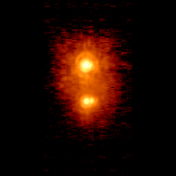 The entire T Tau triple system, showing a much larger region than the other movie. The orbit of T Tau S around T Tau N is drawn in green, with T Tau N in the center. T Tau Sa/Sb are located at their position on 1. January 2020. Also shown are the circumstellar disk around T Tau N, and the circumbinary disk around T Tau S.